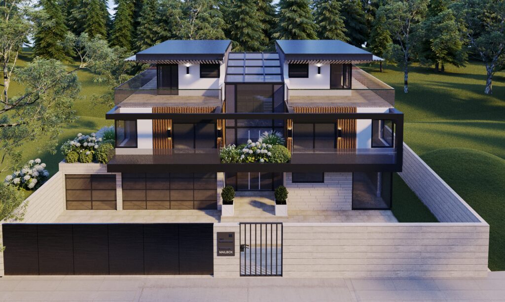 Unsere „OPEN SKY VILLA“ verfügt über ein offenes und großräumiges Wohnraumkonzept mit weitläufigen Dachterrassen, modernster und innovativer Gebäudetechnik, in Verbindung mit KNX Steuerung zur Erlangung eines optimalen Energiemanagements. Die Villa verfügt über integrierte Kleiderschränke, Fitnessraum, Kinosaal, einem Pool sowie einem modernen Aufzug. Die gesamte Fassade sowie Innengestaltung übernehmen europaweit bekannte Exterior sowie Interior Designer.