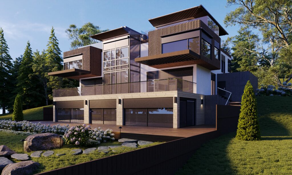 Unsere „OPEN SKY VILLA“ verfügt über eine dynamische Fassade in Verbindung mit attraktiven assymmetrischen Vor und Rücksprüngen. Dabei finden unterschiedliche Naturmaterialien wie Holz, Naturstein etc. Anwendung und vervollständigen eine eindrucksvolle und lebendige Fassade. Diese wird filigrane Ganzglas Geländer ergänzt.
